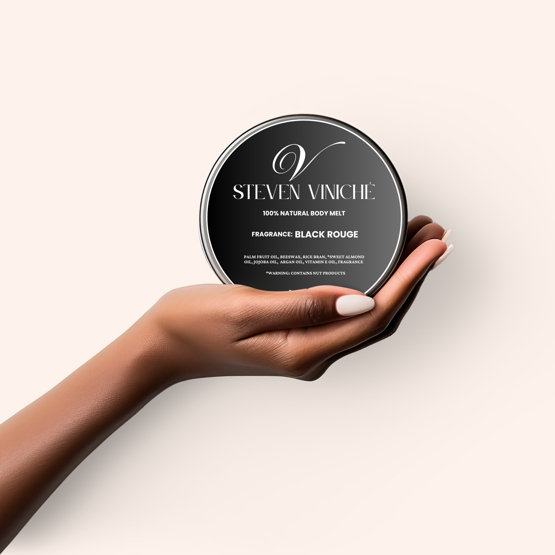 Black Rouge by Steven Viniche' is a melt that unveils a captivating alchemy of scent. A rich and vivid olfactory signature that leaves a profound impression. Breezy jasmine, radiant saffron, and the mineral depth of ambergris come together to enhance the earthy warmth of freshly-cut cedar. Bright, sleek, and refined, this fragrance gently caresses the skin, whispering a sensual fusion of amber, wood, and floral elegance—a truly poetic masterpiece.